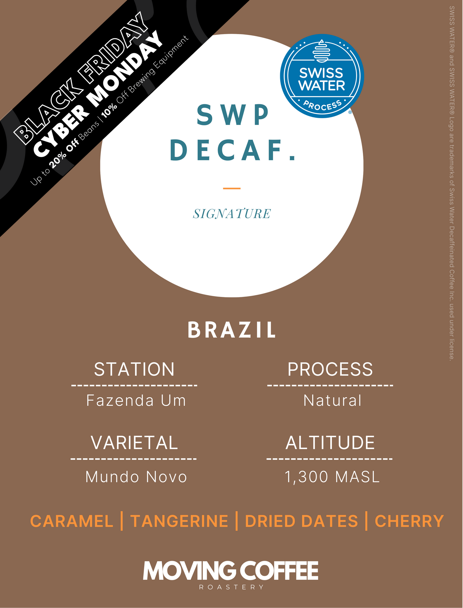 To create a clean, caffeine-free cup, the coffee is gently decaffeinated in Canada using the Swiss Water® Process—a 100% chemical-free method that preserves the bean’s natural sweetness and complexity. The result is a decaf that retains the vibrant character of its origin, offering a comforting yet flavourful experience in every brew.