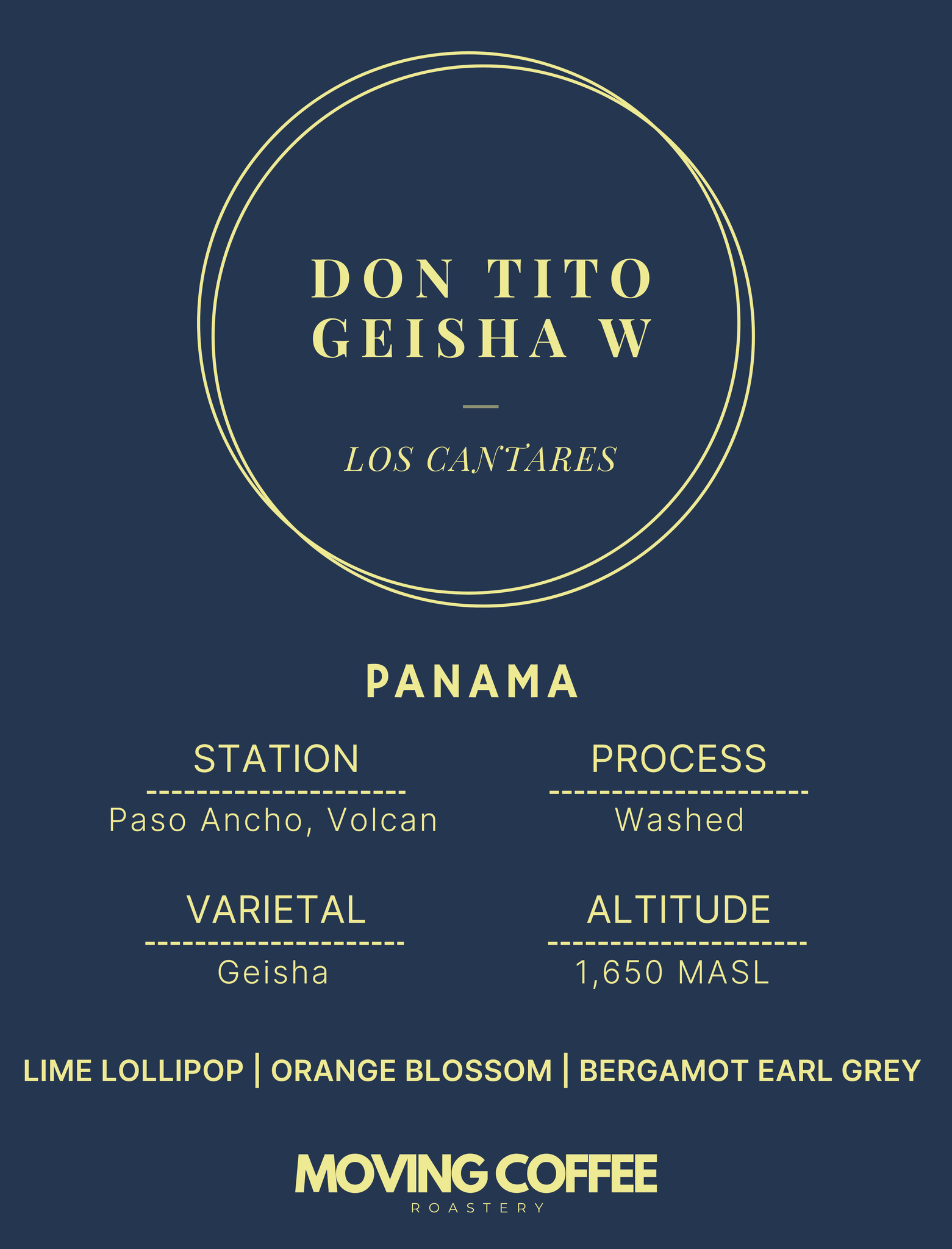 Finca Los Cantares first earned international recognition in 2012 when a washed Geisha from the estate won first place at the Best of Panama. Today, the Don Tito Geisha carries that legacy of precision and elegance forward. Cultivated at 1,650 meters on volcanic soils near Volcán Barú National Park, it offers a refined cup with lime lollipop, orange blossom, and bergamot earl grey, framed by a smooth, balanced structure that reflects the mastery of the estate.