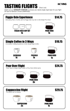 Espresso Flight: You'll receive the three different coffees extracted from espresso machine. Compare and discover the coffees side by side.